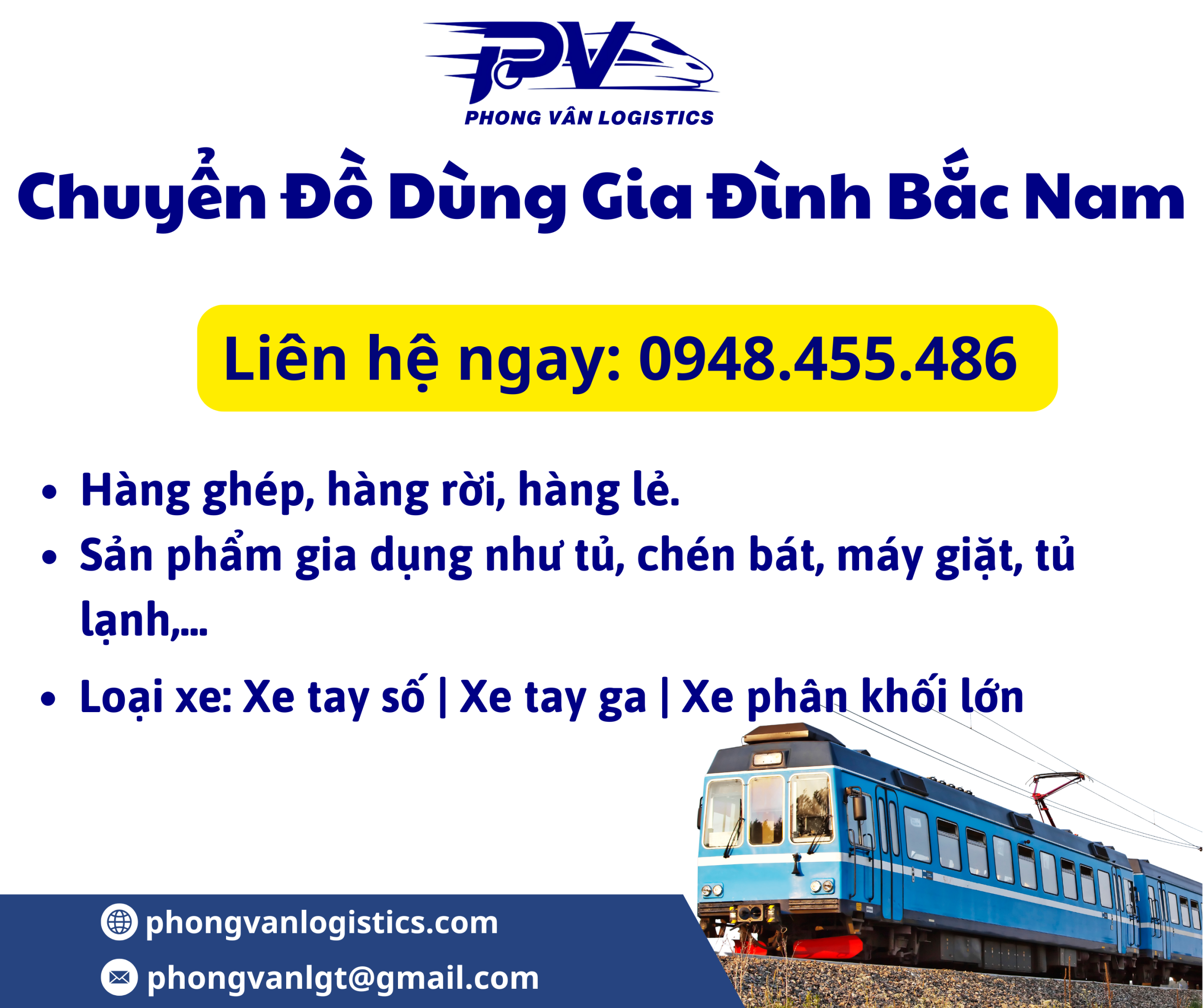 Hành trình chuyển đồ dùng gia đình đường sắt tuyến Bắc Nam sẽ không còn là gánh nặng khi có sự đồng hành của một đơn vị vận tải chuyên nghiệp. Phong Vân Logistics không chỉ vận chuyển đồ đạc, chúng tôi vận chuyển sự tin tưởng, an tâm và giúp bạn khởi đầu một chương mới của cuộc sống một cách nhẹ nhàng và trọn vẹn nhất.
